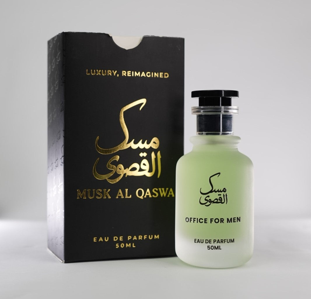 OFFICE FOR MENS by MUSK AL QASWA is a premium fragrance crafted for the confident, modern man. Designed to exude professionalism and style, this scent is the perfect companion for workdays, business meetings, and everyday wear. It strikes the ideal balance between freshness, depth, and masculinity, making it your signature scent for success.